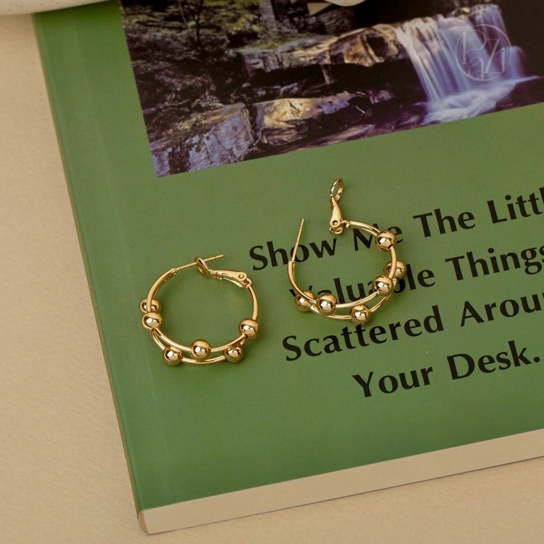 Cold Wind Metal Beads Hoop Earrings Female Ear Ring