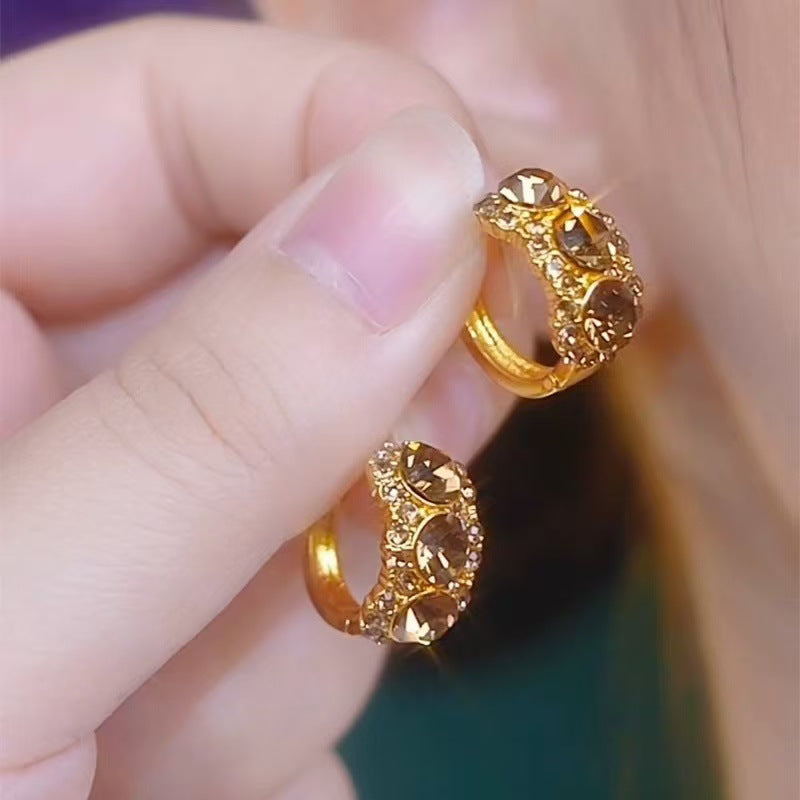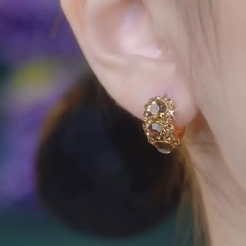 Diamond-embedded Brown Zircon Hoop Earrings
