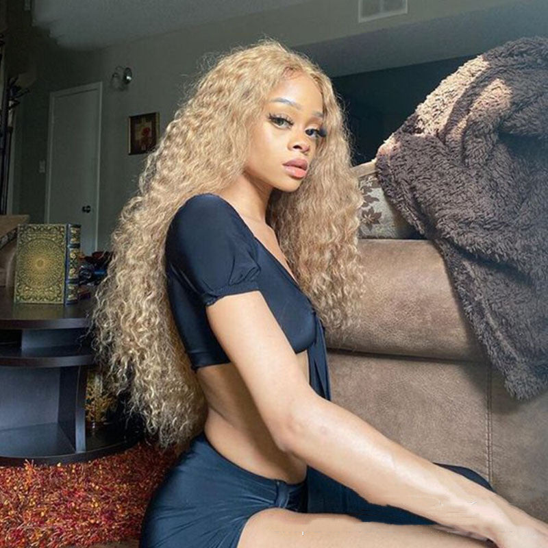 Women's Side Parted Brown Long Curly Corn Perm Wig